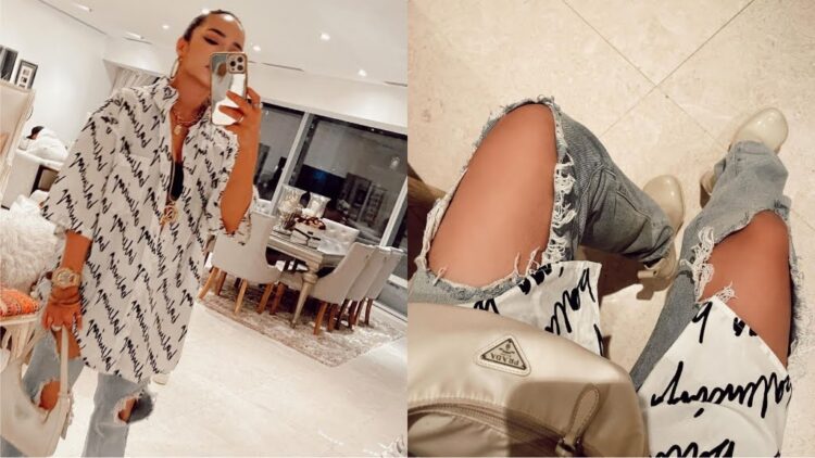 Menerusi hantaran di Instagram, Nora diliha memakai seluar ‘ripped jeans’ yang terdedah di bahagian lutut bersama kemeja.