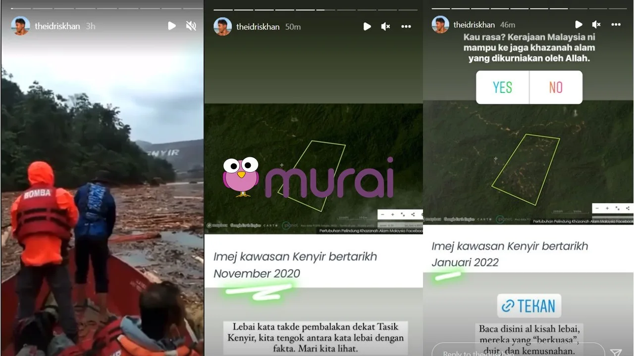 Kejadian yang berlaku di Tasik Kenyir sedikit sebanyak memberi kesan kepada pelakon Idris Khan. Di Instagram Story miliknya, dia berkongsikan gambar peta Tasik Kenyir pada tahun 2020 sehingga 2021.