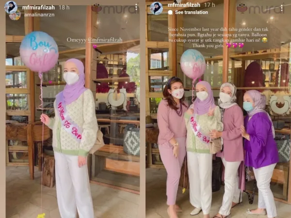 Pelakon dan hos jelita, Mira Filzah kelihatan semakin berseri-seri apatah aura keibuan jelas terpancar di wajahnya. Baru-baru ini Mira dan rakan baiknya mengadakan pertemuan ringkas, bagi meraikan serta mendedahkan jantina anak (baby shower) di Dusun OpenHouse.