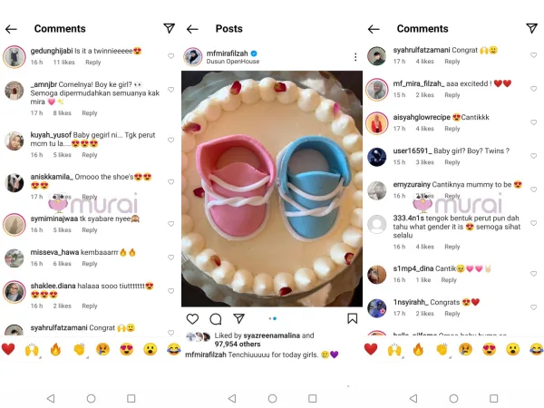 Melihat foto kek yang dimuatnaik Mira di Instagram nya, ramai peminat selebriti ini teruja meneka jantina anak pertamanya. Ada yang memberi komen bayi lelaki, ada yang mengatakan ianya bayi perempuan dan ada juga yang meneka ianya kembar.