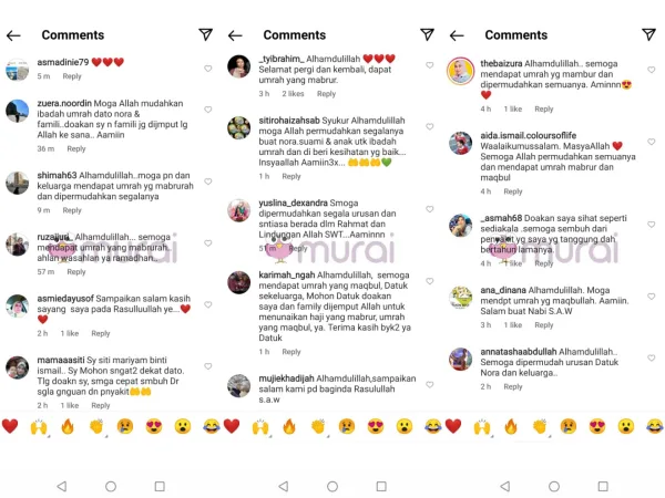 “Syukur alhamdulillah moga Allah permudahkan segalanya buat Nora, suami dan anak untuk ibadah umrah dan di beri kesihatan yang baik..” komen mereka
