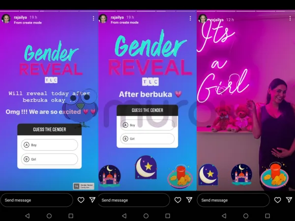 Selepas dua hari, Raja Ilya mendedahkan jantina anaknya kepada umum selepas waktu berbuka semalam. Selebriti tersebut dengan rasa gembira dan teruja, mengumumkan bahawa beliau bakal menimang cahaya mata perempuan.