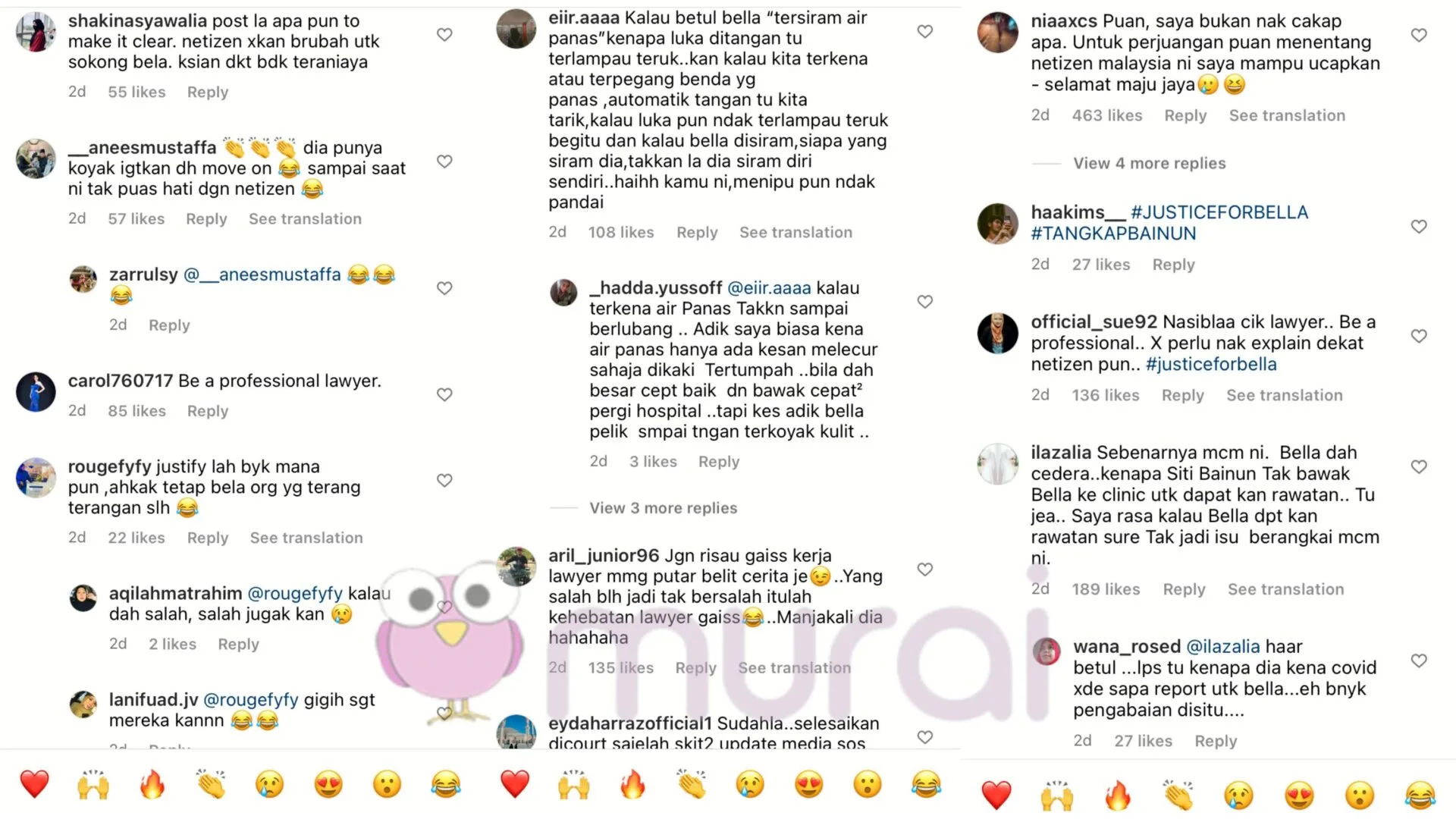 “Nasiblaa cik lawyer. Be a professional. Tak perlu nak explain dekat netizen pun.#justiceforbella.”