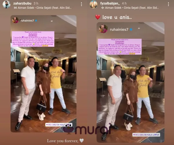 Melihat hantaran Ruhainies di Insta Stories tersebut, Fyzal dan Zahar masing-masing membalas dengan kapsyen ringkas di media sosial mereka.