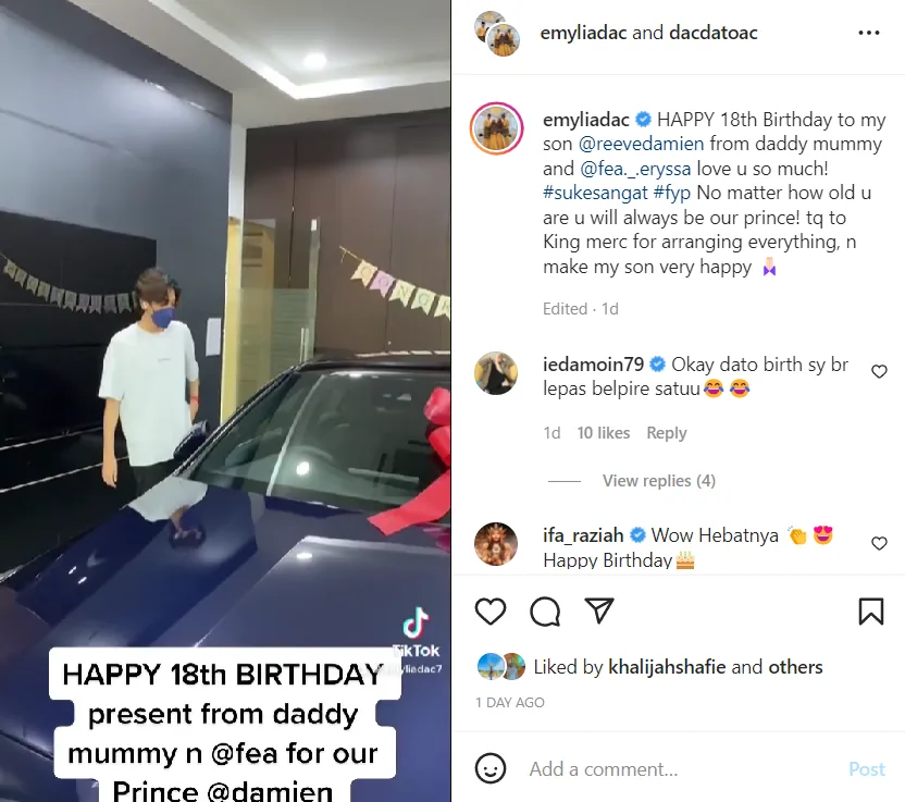 “Happy 18th Birthday to my son @reevedamien from daddy mummy and @fea_eryssa. Love you so much! “-Dato AC Mizal