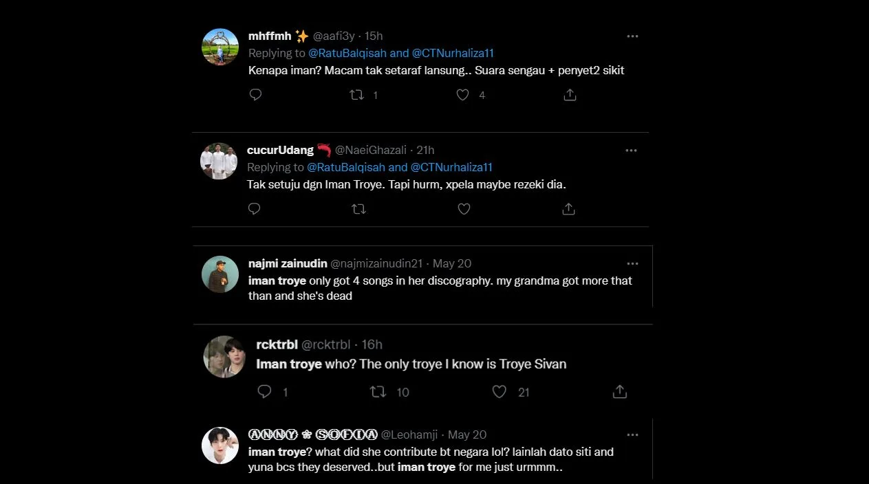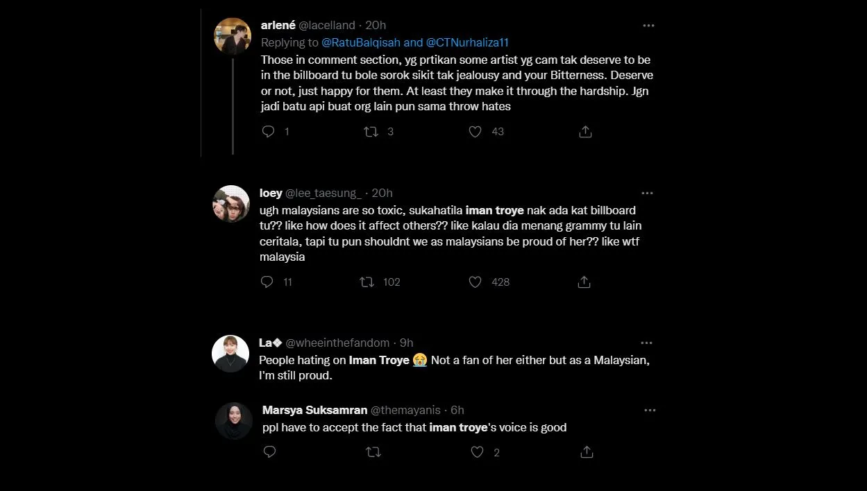 Disebalik kecaman yang telah dilontarkan oleh netizen, namun masih ada netizen yang tidak bersetuju dengan kecaman yang diberikan kepada Iman Troye.