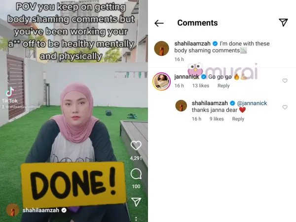 Muat naik Shila mendapat sokongan dari Janna Nick, pelakon dan penyanyi lagu Nakal ini menitipkan kata-kata semangat buat Shila menerusi komen yang ditinggalkannya.
