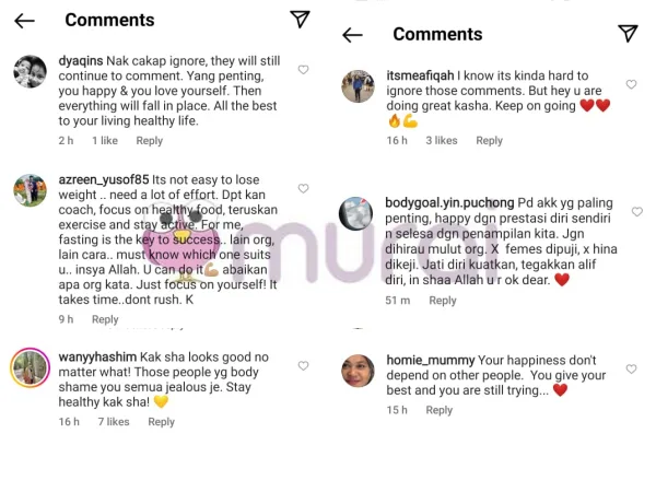 “Pada akak yang paling penting, gembira dengan prestasi diri sendiri dan selesa dengan penampilan kita.. Jangan hiraukan mulut orang” komen netizen