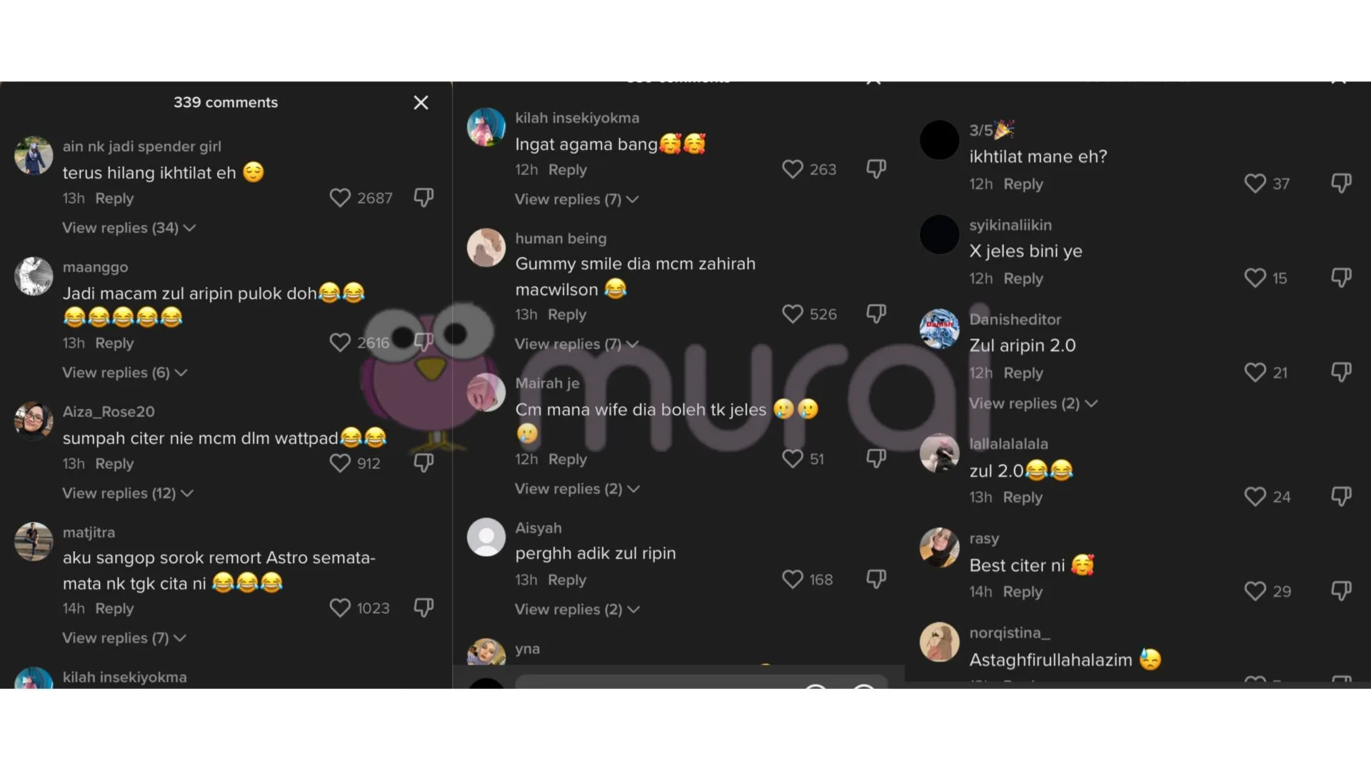 Tinjuan Murai MY di ruangan komen di aplikasi TikTok Scha Elinnea, mendapati rata-rata netizen mempersoalkan tindakan Hisyam yang tidak menjaga ikhtilat dengan pelakon wanita. Malah, ada yang turut mempersoalkan adakah isterinya tidak merasa cemburu melihat babak romantis yang dilakonkan oleh suaminya itu.