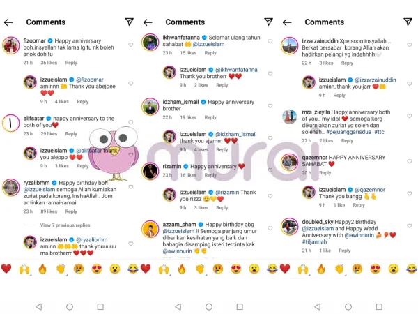 “Selamat ulang tahun sahabat @izzueislam” komen Ikhwan Fatanna
