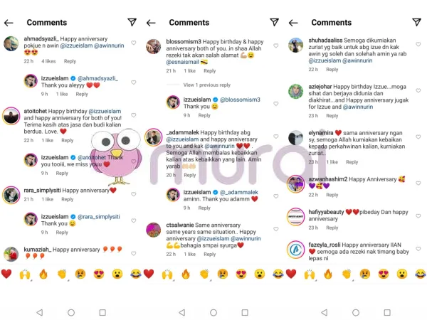 Melihat muat naik Izzue, penyanyi dan pelakon berbakat ini mendapat banyak ucapan dan doa dari rakan selebriti, kenalan rapat dan juga peminat di ruangan komen hantaran tersebut.