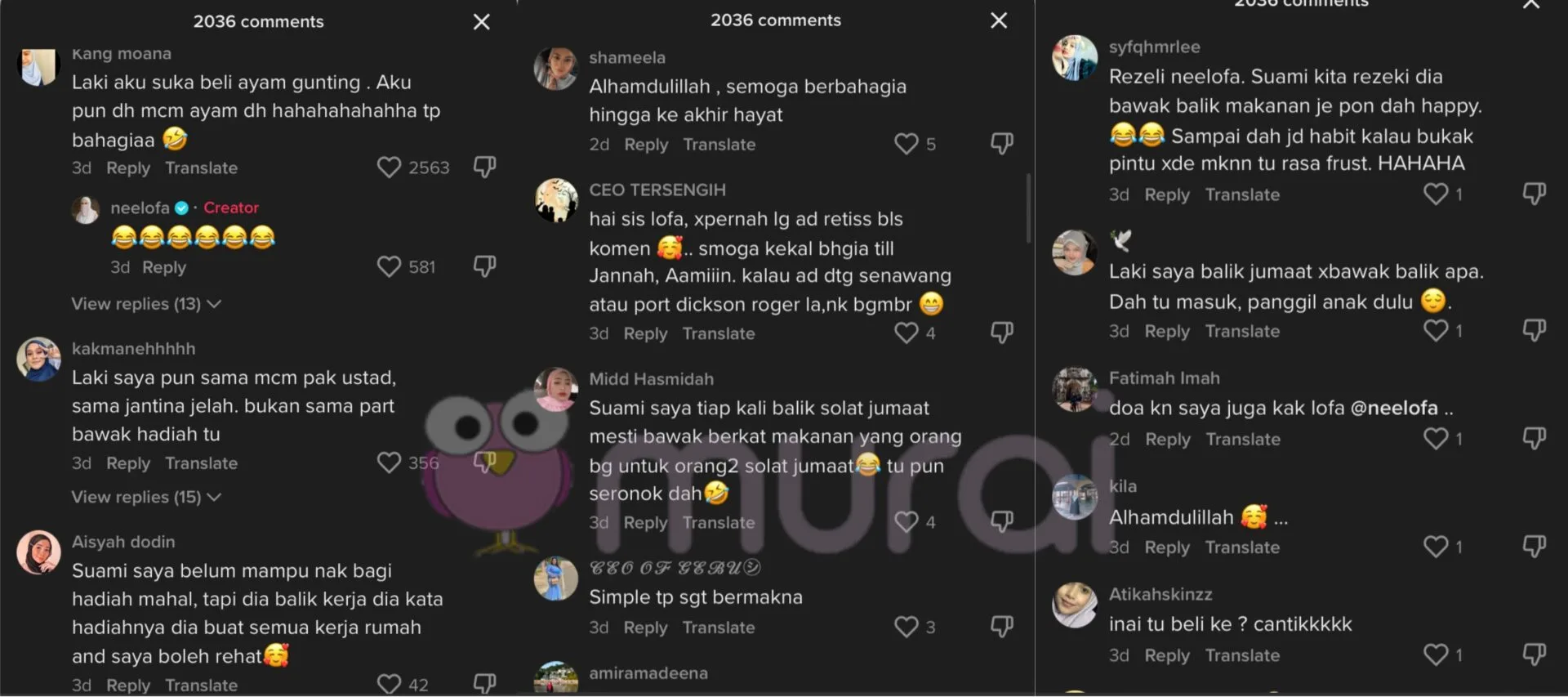 Sebenarnya ini kali pertama pak ustad beli bawak balik suprie hadiah..Dan Lofa suka tengok video-video bila suami bagi hadiah kat isteri. Doakan keberkatan rumah tangga kami.”-Kongsi Neelofa