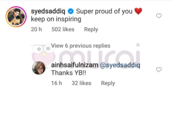 Selain Syed Saddiq, ramai warganet juga turut memberi ucapan tahniah kepada Ain diruangan komen muatnaiknya.