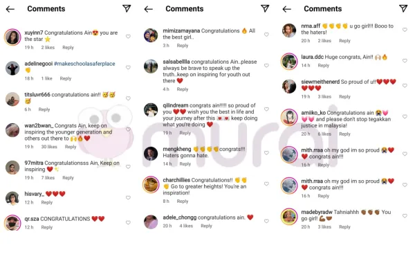 “Tahniah Ain!!” Komen mereka