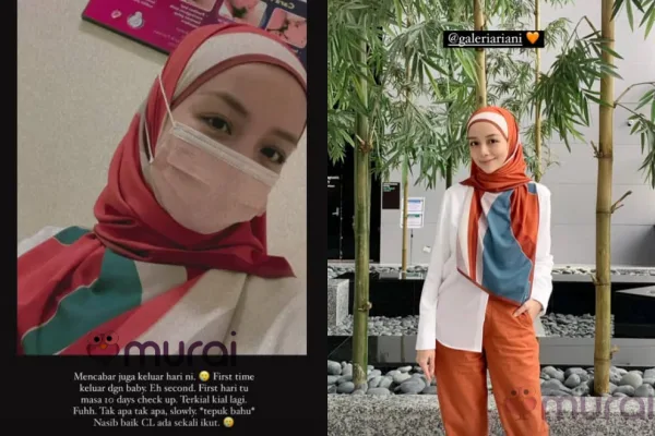 “Mencabar juga keluar harini. Pertama kali keluar dengan baby. Eh kedua. Pertama kali hari tu masa 10 hari pemeriksaan. Terkial-kial lagi. Fuh. Tak apa tak apa. Perlahan-lahan. *tepuk bahu*” Coretnya