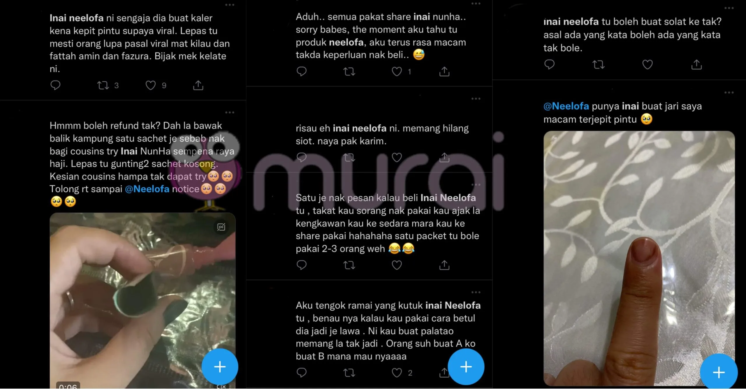 “Inai Neelofa ni sengaja dia buat kaler kena kepit pintu supaya viral. Lepas tu mesti orang lupa pasal viral mat kilau dan fattah amin dan fazura. Bijak mek kelate ni.”