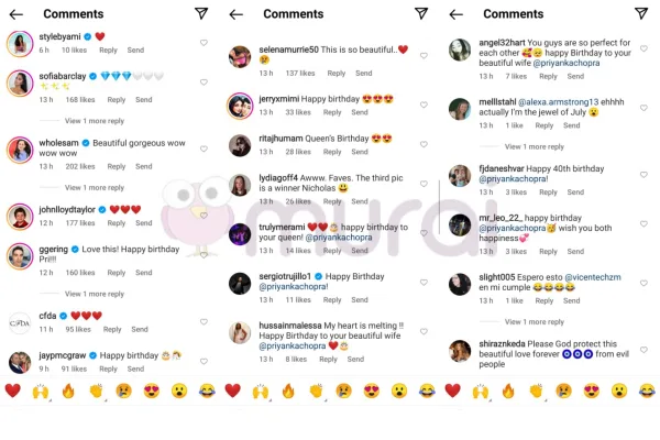 “Selamat hari lahir @priyankachopra semoga anda berdua bahagia” komen mereka