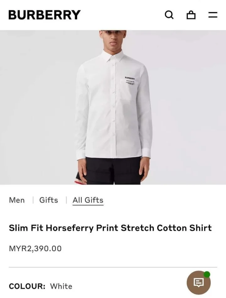 Pengguna Twitter tersebut juga berkongsi harga baju Burberry tersebut. Di laman sesawang Burberry, baju tersebut dijual dengan harga RM2,390 sehelai.