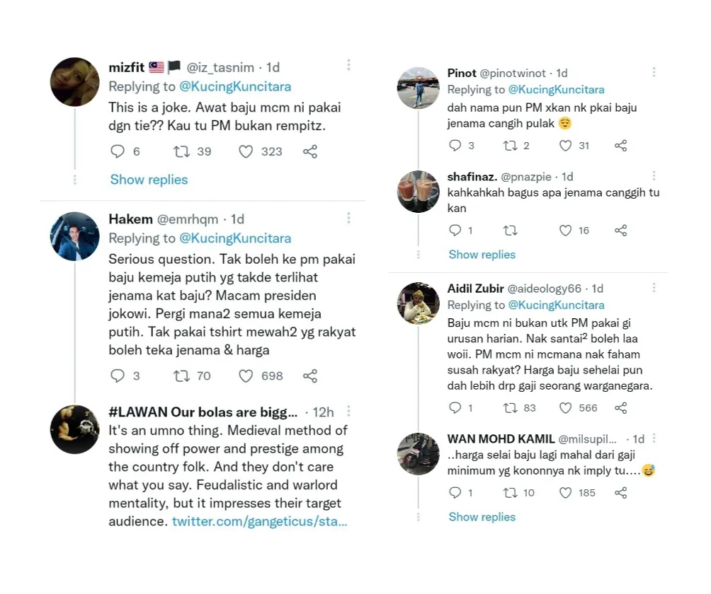“Dah nama pun PM takkan nak pakai baju jenama Canggih pulak”- kata seorang netizen yang lain