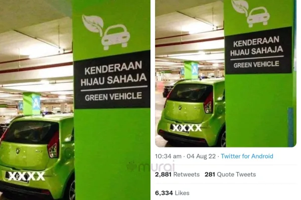 Berdasarkan perkongsian di laman Twitter tersebut, gambar yang dimuatnaik di media sosial ini memaparkan sebuah kereta jenama Proton Iriz berwarna hijau parking di kawasan zon untuk ‘kenderaan hijau’ di dalam sebuah pusat membeli-belah.
