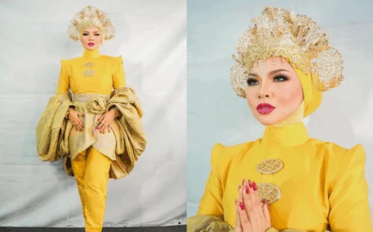 Persalinan itu adalah rekaan Ashraff Zainal, di bawah kelolaan Vee Mukhtaram (@xeliciousxass) sebagai penata gaya.