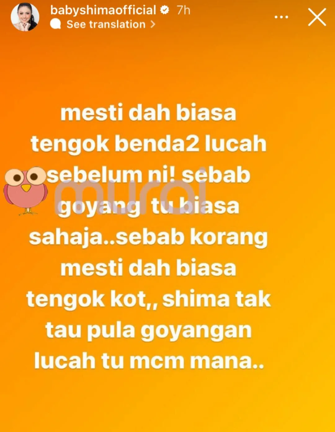“Sebab goyang tu biasa sahaja. Shima tak tau pula goyangan lucah tu macam mana.”-Tulis Baby Shima