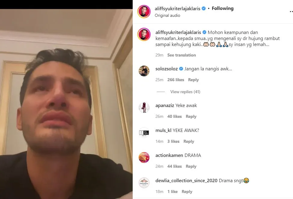 Malah Aliff juga menyatakan bahawa dia ingin mengundur diri dan mendoakan agar semua bahagia dan tenang.
