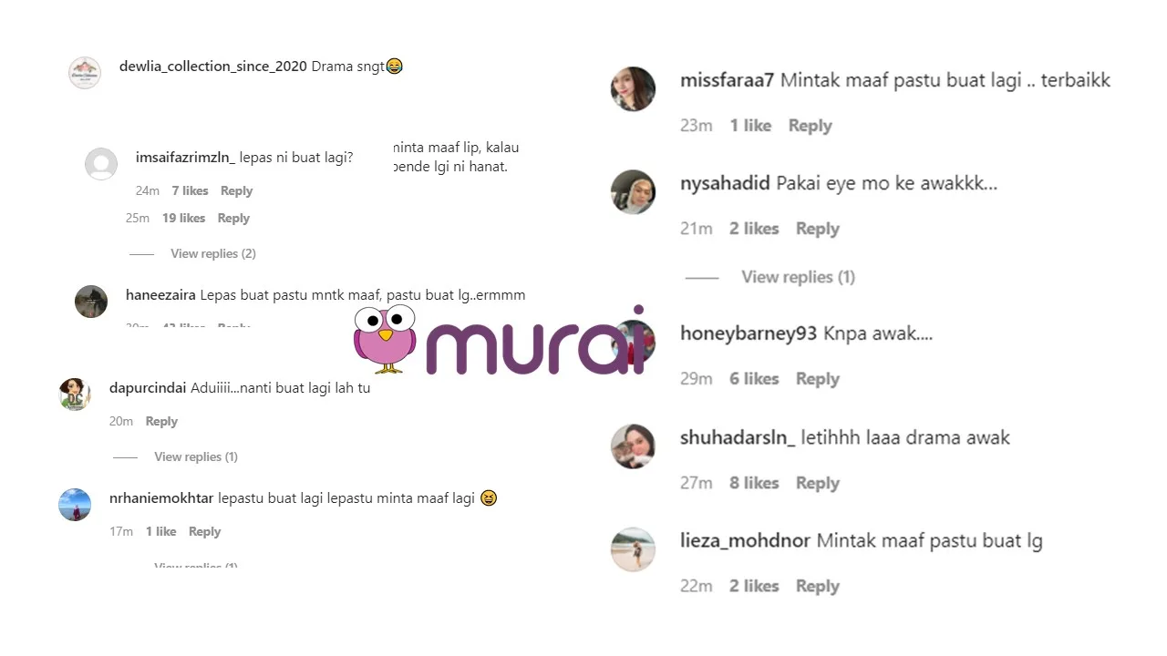 Video tersebut mendapat perhatian dari para netizen. Melihat diruang komen, rata-rata netizen seolah-olah mempersoalkan permohonan maaf dan pengakuan yang diucapkan oleh Aliff tersebut.