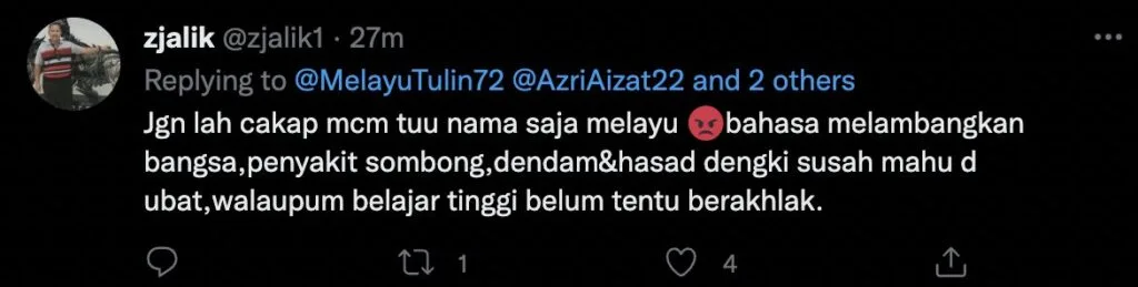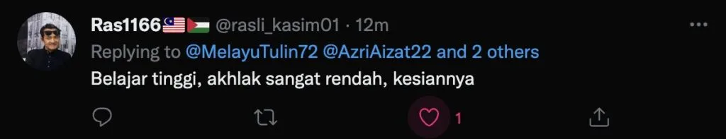 Di laman twitter ramai meluahkan kemarahan terhadap individu tersebut. Malah mereka kecewa dengan anak muda yang berpelajaran tinggi namun mempunyai akhlak yang sangat rendah dan tiada adab.