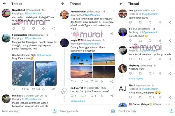 Melihat ciapan tersebut warganet mula membanjiri ruangan balas Twitter dan berkongsi pelbagai respon serta reaksi tentang percutian di negeri pantai timur berkenaan.