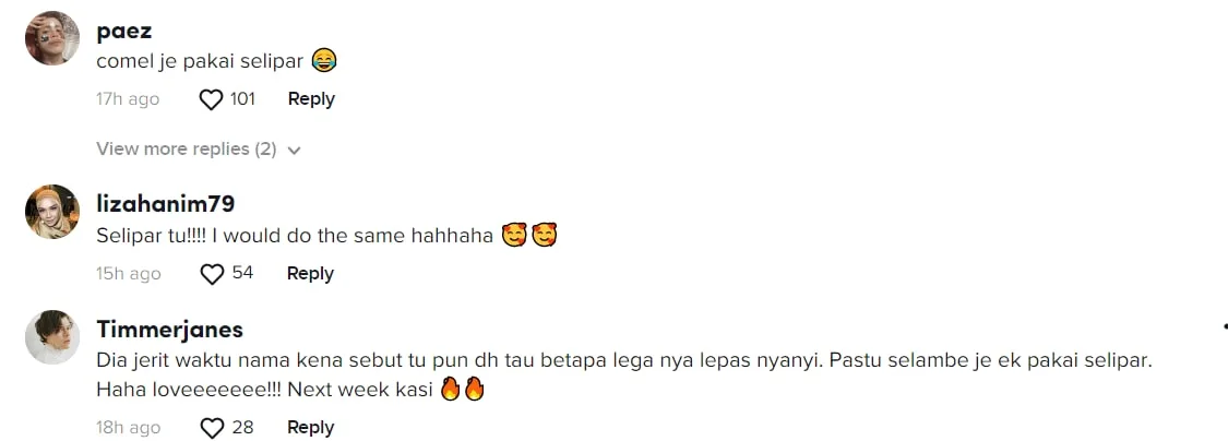 Hasil tinjauan Murai My di ruang komen tiktok milik Jaclyn, ramai yang terhibur dengan penampilan Jaclyn yang hanya memakai selipar sahaja.