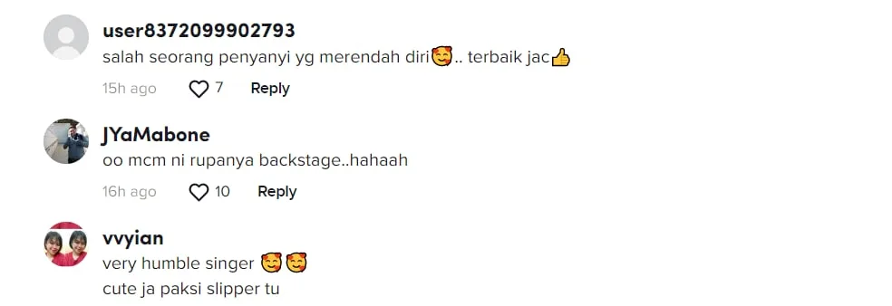 Ada juga yang memberi komen mengatakan Jaclyn merupakan salah seorang artis yang merendah diri.