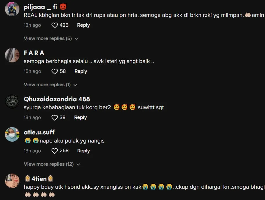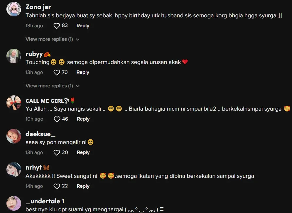 Menjengah ke ruangan komen, rata-rata netizen sebak dengan video tersebut dan mendoakan kebahagiaan buat rumah tangga yang dibina.
