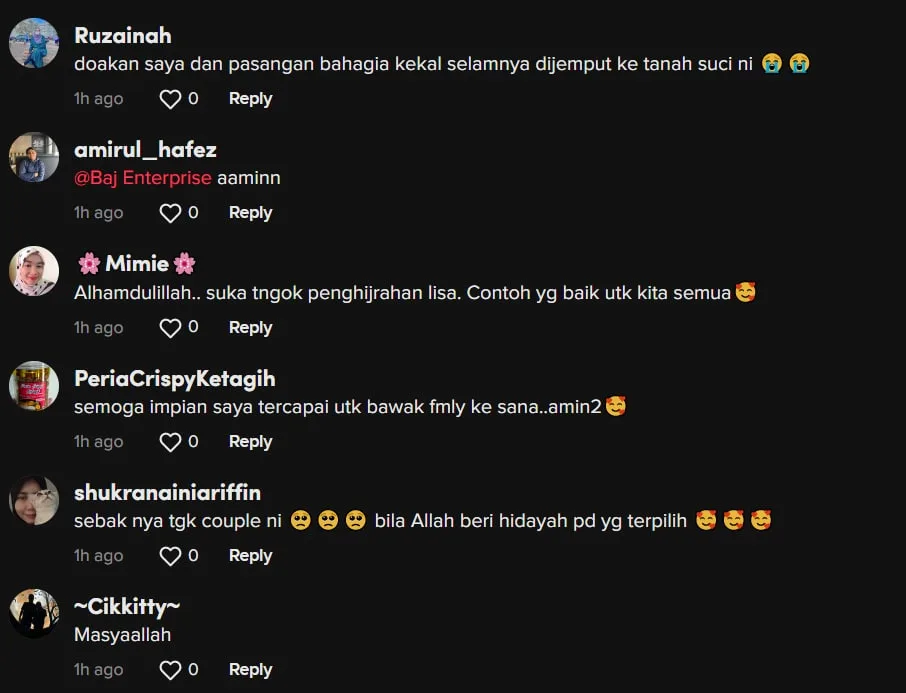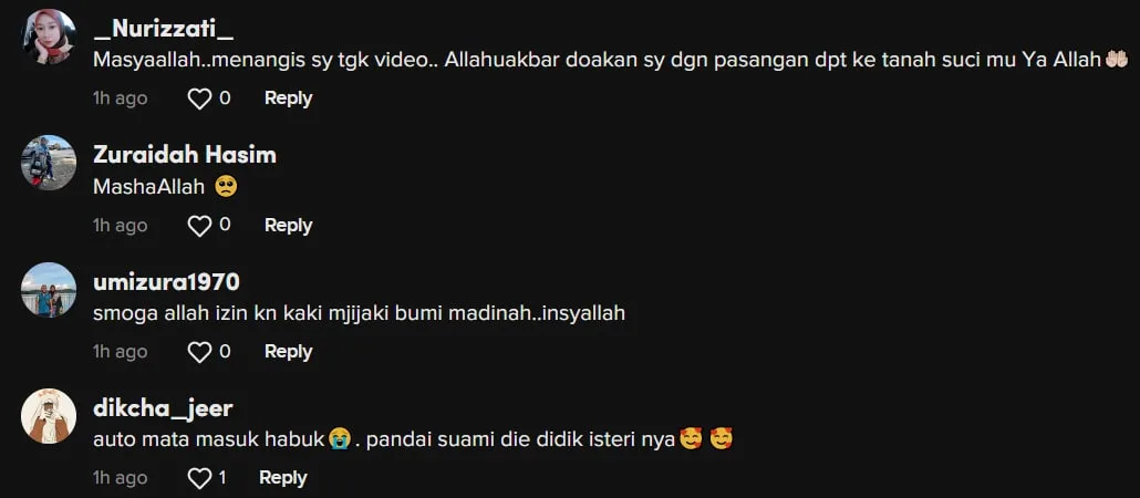 Menjengah keruangan komen video tersebut, ramai yang ikut sebak melihat suasana di tanah suci dan memohon doa agar dapat menjejakkan kaki ke tanah suci suatu hari nanti.