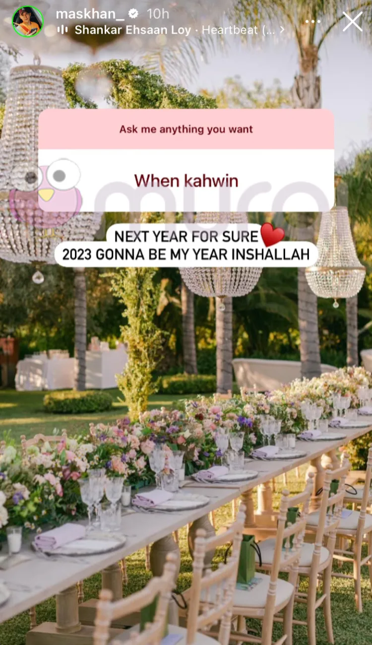 Mas Khan kemudian memberitahu bahawa dia pasti akan mendirikan rumah tangga pada tahun hadapan dan menitipkan harapan agar tahun 2023 akan menjadi tahunnya.