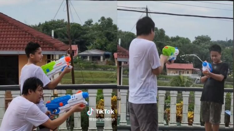 Menerusi video tersebut, Jep dan anak-anaknya terlihat gembira bermain pistol air di luar rumah. Mereka saling berkejaran dan menembak sesama sendiri sehingga masing-masing basah kuyup. Sari juga menulis kapsyen di video tersebut dengan mengatakan mereka semua berkelakuan seperti kanak-kanak ribena.