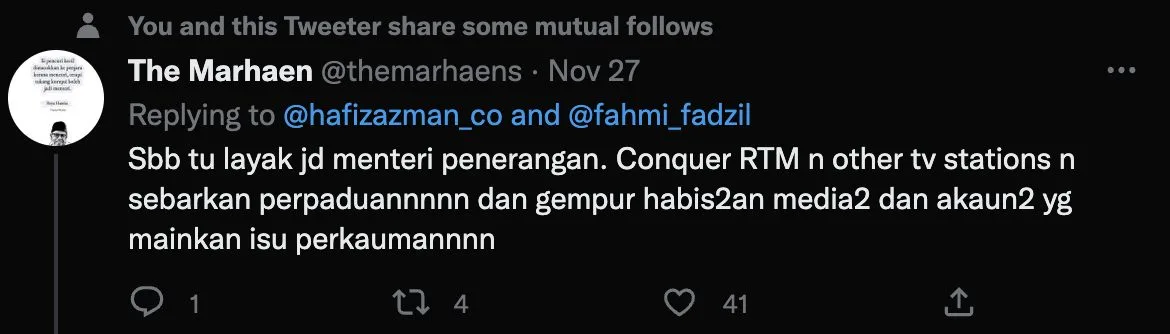 Mungkin ramai yang tidak tahu penglibatan Fahmi dalam industri seni, kerana netizen meluahkan rasa terkejut mereka terhadap posting tersebut. Beberapa netizen juga memberi cadangan bahawa dia harus dipilih sebagai Menteri Penerangan.