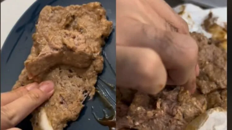 Menerusi video yang dikongsi, terlihat burger yang diterima olehnya daging masih mentah dan lembik. Pembeli menyoalkan apa yang cuba pihak restoran tersebut sajikan kepadanya. Dia juga bengang apabila burger yang diterima itu seolah-olah untuk makanan haiwan, bukan untuk manusia makan.