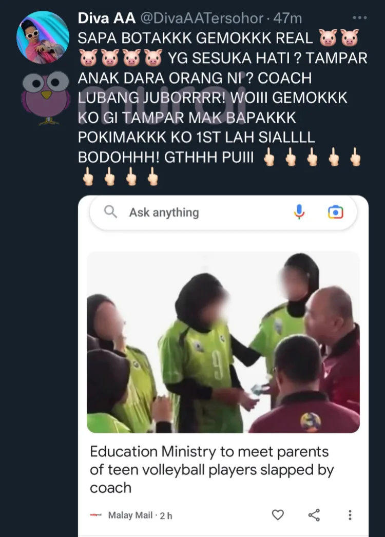 Woi gemokk ko gi tampar mak bapak pok*makk ko first la sia* bodo*! GTHH PUII.”-Berang Diva AA