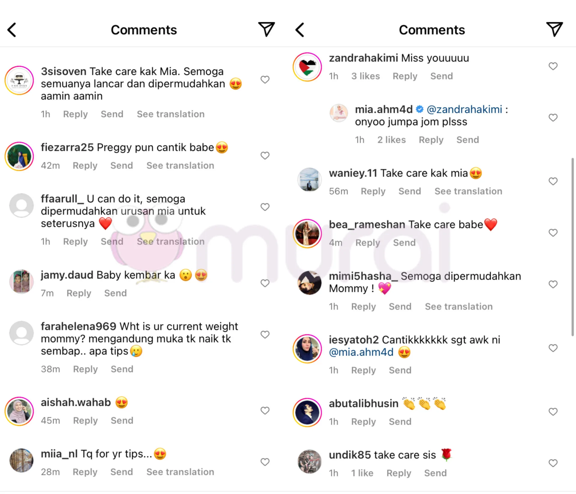 Dalam pada itu, ruangan komen turut dibanjiri dengan komen netizen yang menitipkan doa buat Mia Ahmad agar dipermudahkan segala urusan untuk melahirkan cahaya mata ketiga kelak.