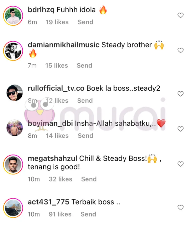 Biarpun menghadkan untuk memberikan komen di hantaran Syamsul, rata-rata netizen dan rakan selebriti seperti Boy Iman, Damian Mikhail dilihat memuji sikap Syamsul yang masih steady terhadap perkara yang berlaku.