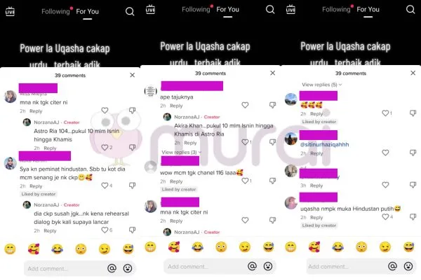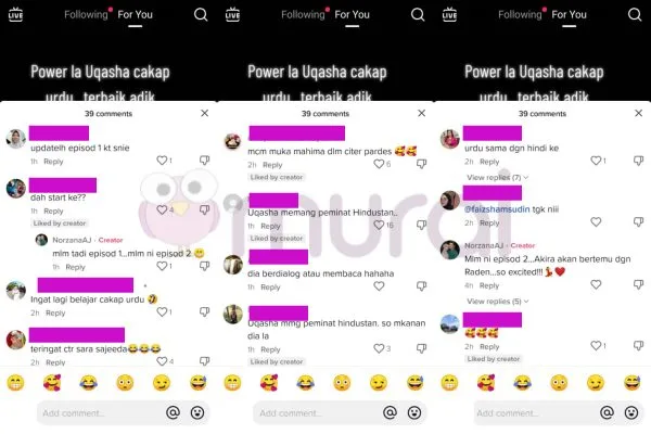 Salah satu muatnaik milik NorzanaAJ di TikTok yang memaparkan sedutan pendek Uqasha berdialog dalam bahasa urdu dalam drama tersebut menarik perhatian ramai. Malah pemilik hantaran ini juga menulis coretan ringkas dan memuji aktres jelita ini dapat berbahasa dengan baik.