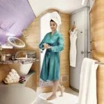 Satu lagi kemudahan unik pada pesawat Emirates A380 ialah Onboard Shower Spa. Nikmati pancuran mandian yang menyegarkan pada ketinggian 40,000 kaki menggunakan peralatan mandian daripada produk Bvlgari dan Timeless Spa. Sudah tentu anda akan segar sebelum tiba di destinasi anda.