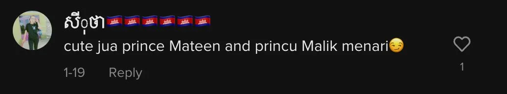 Di ruangan komen di laman TikTok, rata-rata peminat Mateen meluahkan rasa teruja menyaksikan telatah putera raja ini menari.