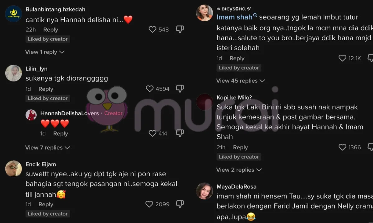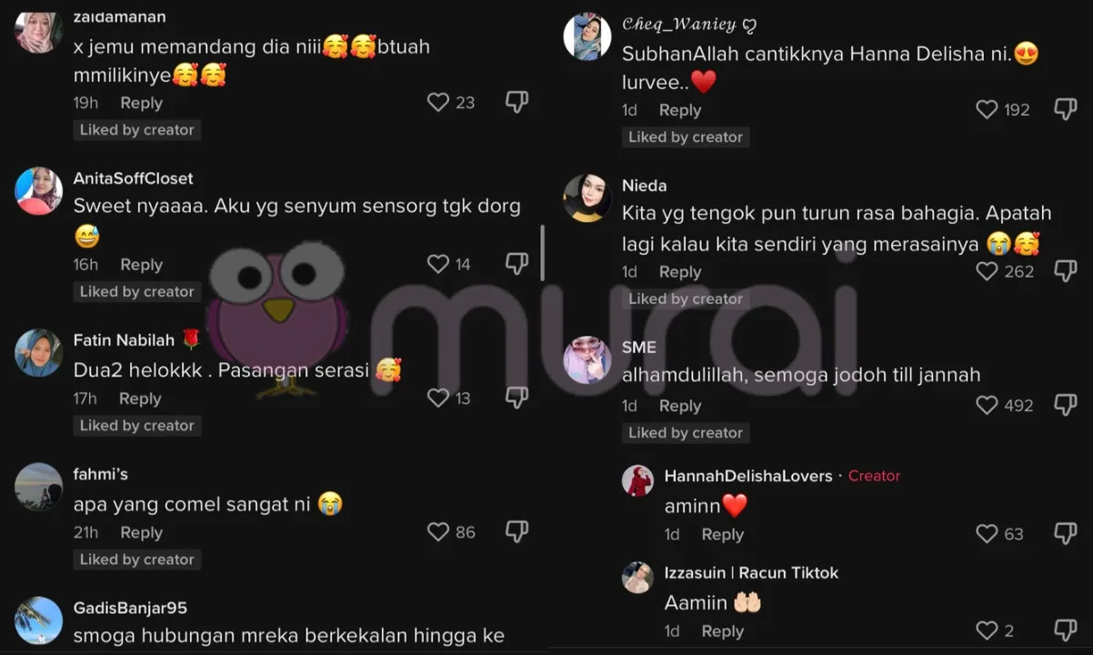 Manakala di ruangan komen pula, mereka menyifatkan sang suami seorang yang lemah lembut serta pandai menjaga Hannah. Ada pula yang suka melihat pasangan ini bersama bak Merpati dua sejoli.