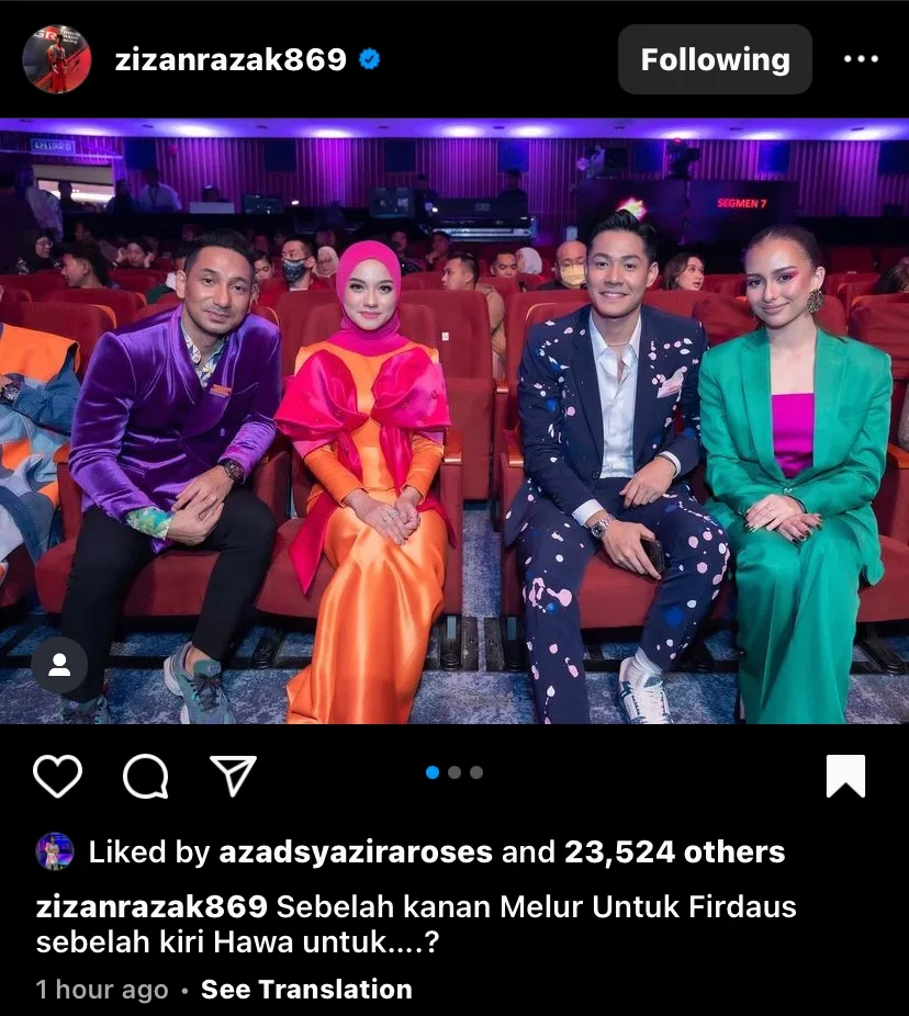 Lensa Murai My sempat menjenggah beberapa instagaram selebriti yang terlibat dengan acara GMWA2022 itu. Salah satu yang mencuit hati adalah, gambar yang dikongsikan oleh Zizan di instagram miliknya.