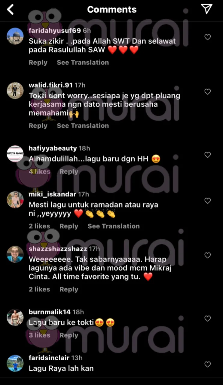 Apa-apa pun, sama-sama kita nantikan lagu terbarunya itu. Murai MY mendoakan agar dipermudahkan segala urusan Tokti untuk lagu baru.