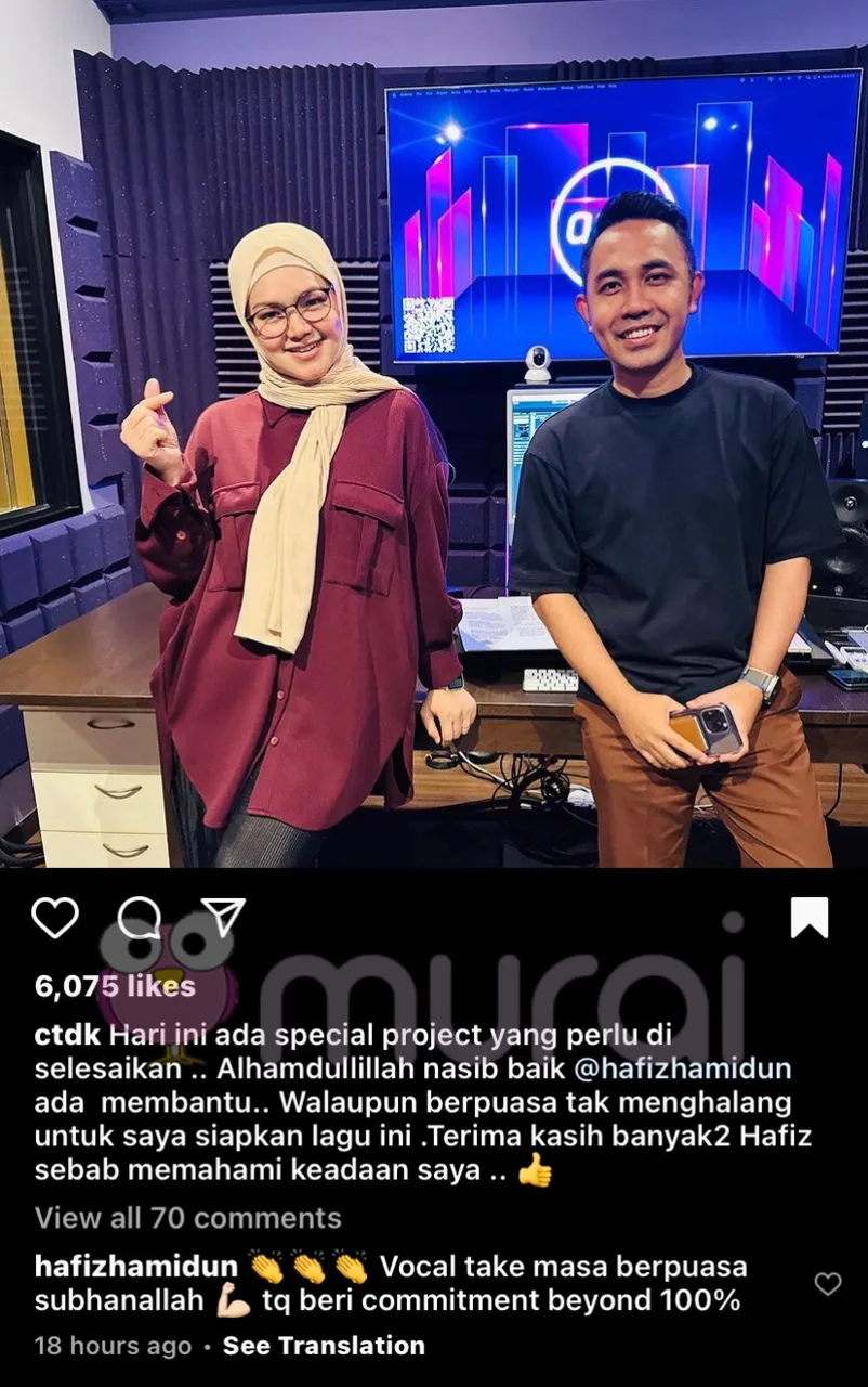 “Dah Habis recording dengan Hafiz, jangan DM-DM Hafiz tanya lagu apa yer! hahaha! rahsia”-kata Siti