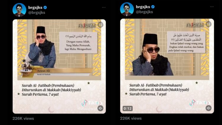 Baru-baru ini, menerusi laman twitter milik @brgsjks dia berkongsikan video di mana Azwan membaca surah al-fatihah. Namun apa yang menarik perhatian adalah gayanya ketika membaca surah tersebut.