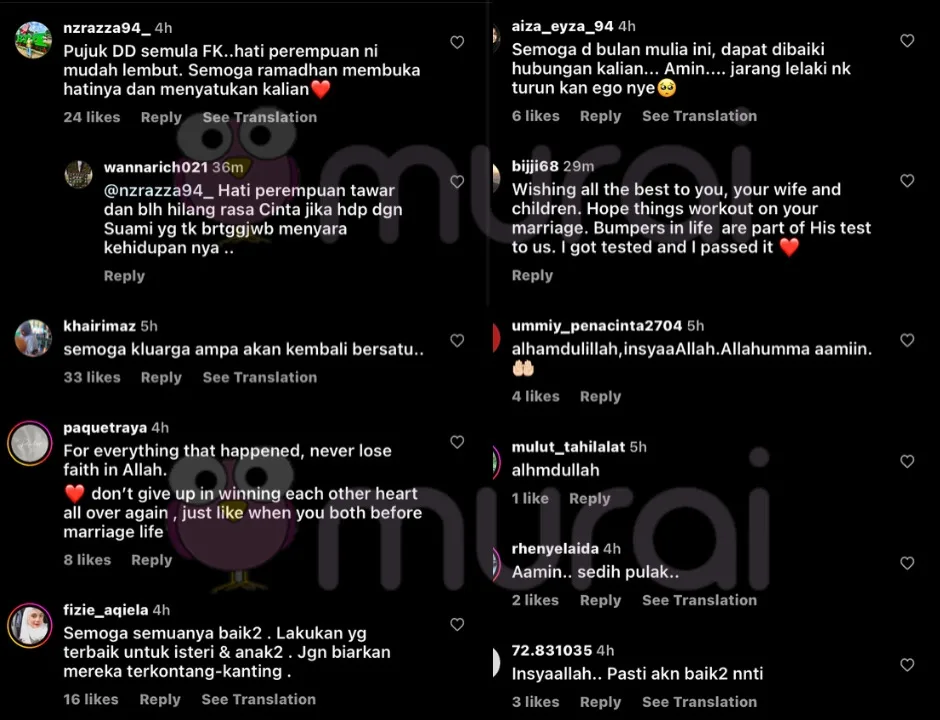 “Pujuk DD semula FK..hati perempuan ni mudah lembut.. semoga ramadan membuka hatinya dan menyatukan kalian.”-kata mereka